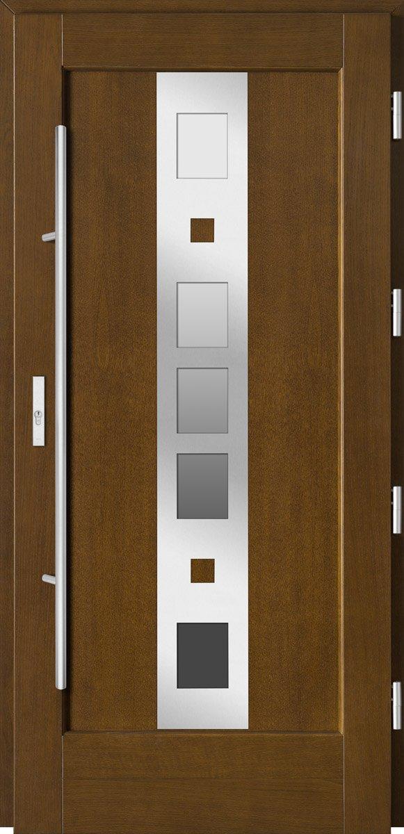 Linia Modern Inox wykorzystuje aplikacje ze stali nierdzewnej jednostronnie od strony zewnętrznej drzwi. Jej charakterystycznym elementem jest wizualne wtopienie stali w płycinę skrzydła, która znajduje się na innym poziomie niż rama drzwi.