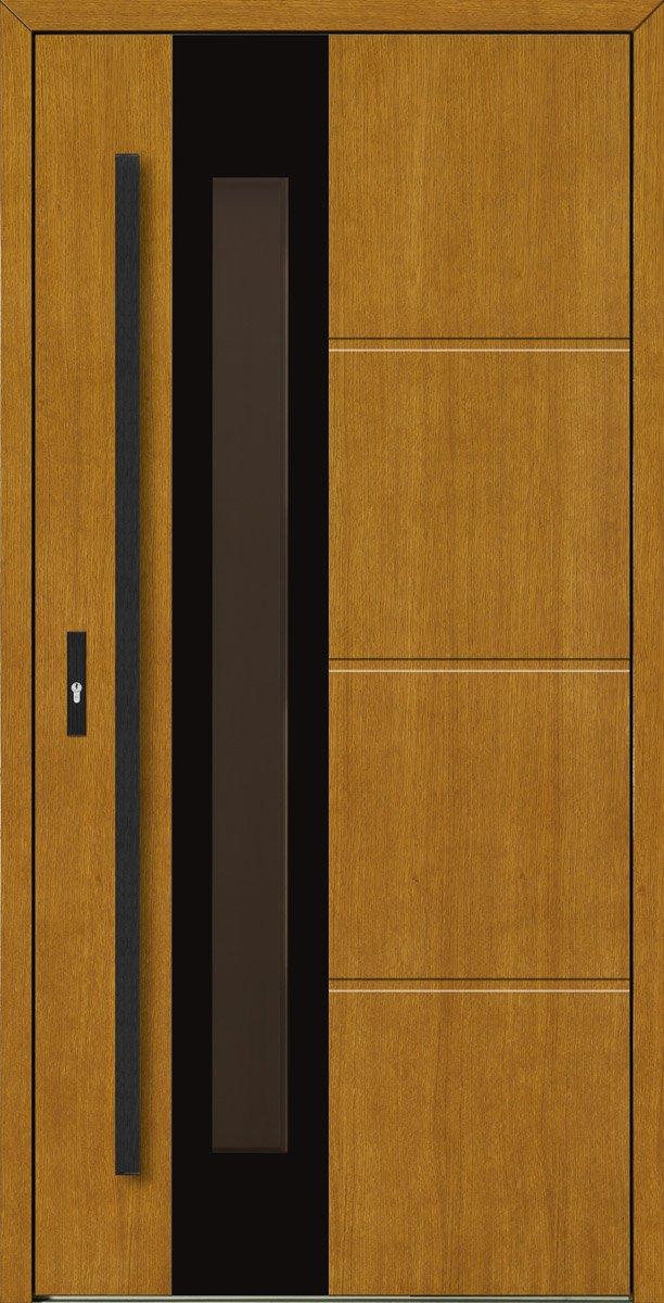 Linia Prestige Glass wyróżnia się tzw. konstrukcją "płycinową". Konstrukcja skrzydła drzwi wykonana jest z drewna sosnowego klejonego warstwowo i naprzemiennie. Dodatkowe wzmocnienie stanowią specjalne metalowe ceowniki. Za niską przenikalność cieplną odpowiada dedykowany panel termoizolacyjny znajdujący się pomiędzy ramiakami skrzydła drzwi. Od zewnątrz drzwi wykończone są wodoodporną sklejkę dębową, która zapewnia odporność na czynniki zewnętrzne jednocześnie zapewniając piękny wygląd jakim charakteryzuje się naturalne drewno.
