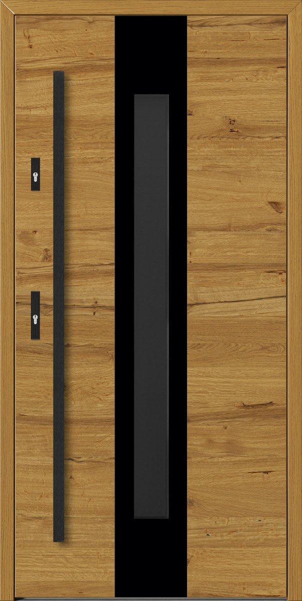 Linia Prestige Glass wyróżnia się tzw. konstrukcją "płycinową". Konstrukcja skrzydła drzwi wykonana jest z drewna sosnowego klejonego warstwowo i naprzemiennie. Dodatkowe wzmocnienie stanowią specjalne metalowe ceowniki. Za niską przenikalność cieplną odpowiada dedykowany panel termoizolacyjny znajdujący się pomiędzy ramiakami skrzydła drzwi. Od zewnątrz drzwi wykończone są wodoodporną sklejkę dębową, która zapewnia odporność na czynniki zewnętrzne jednocześnie zapewniając piękny wygląd jakim charakteryzuje się naturalne drewno.