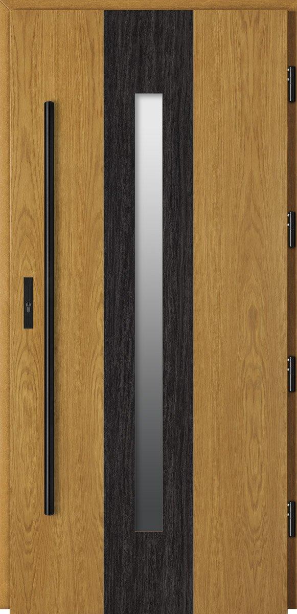 Linia, która doskonale wpisuje się w elewacje zarówno nowoczesnych, jak i tradycyjnych domów. Drzwi z tej linii od zewnętrznej strony zdobią naturalne kamienie, które w połączeniu z drewnem tworzą niebanalne i wysmakowane kompozycje.