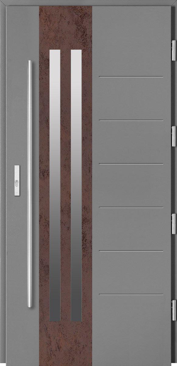 Linia, która doskonale wpisuje się w elewacje zarówno nowoczesnych, jak i tradycyjnych domów. Drzwi z tej linii od zewnętrznej strony zdobią naturalne kamienie, które w połączeniu z drewnem tworzą niebanalne i wysmakowane kompozycje.