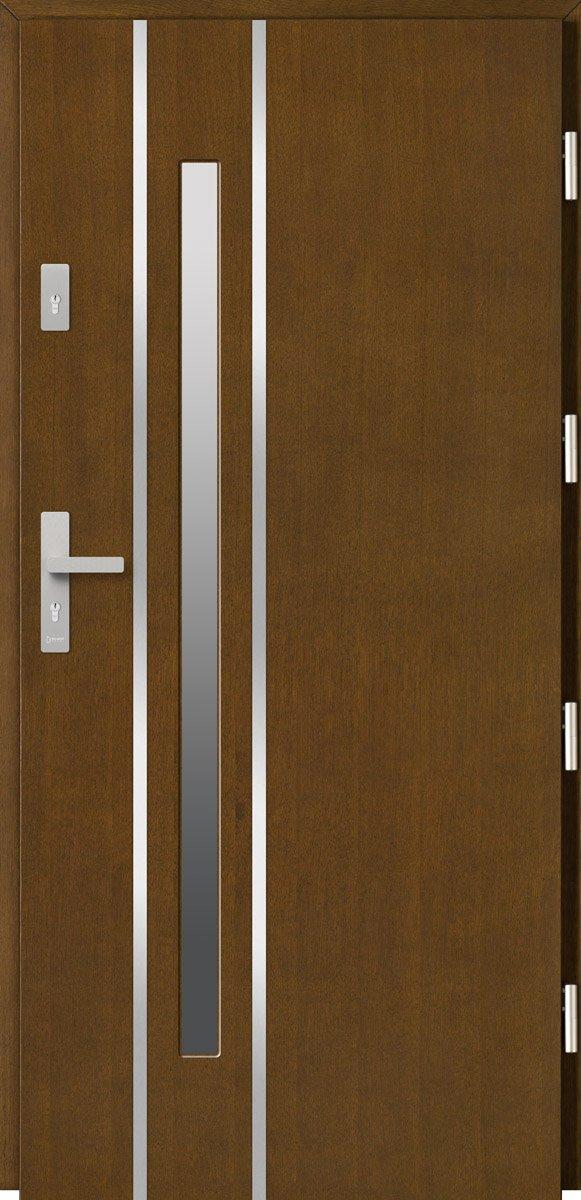 Linia Simple wyróżnia się tzw. konstrukcją "płycinową". Konstrukcja skrzydła drzwi wykonana jest z drewna sosnowego klejonego warstwowo i naprzemiennie. Dodatkowe wzmocnienie stanowią specjalne metalowe ceowniki. Za niską przenikalność cieplną odpowiada dedykowany panel termoizolacyjny znajdujący się pomiędzy ramiakami skrzydła drzwi. Od zewnątrz drzwi wykończone są wodoodporną sklejkę dębową, która zapewnia odporność na czynniki zewnętrzne jednocześnie zapewniając piękny wygląd jakim charakteryzuje się naturalne drewno.