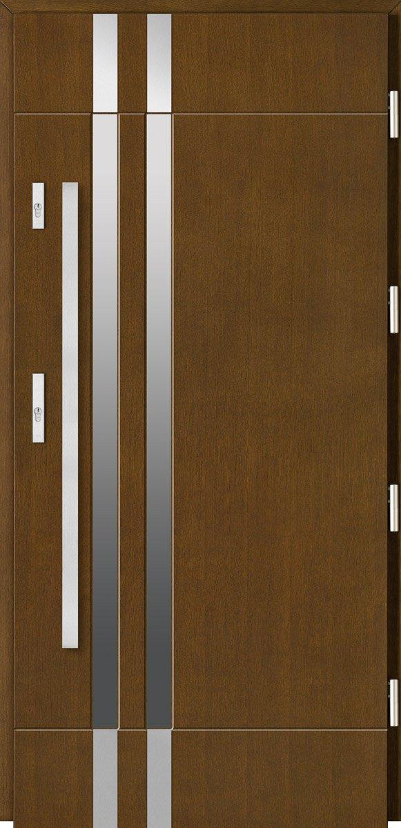 Linia Simple wyróżnia się tzw. konstrukcją "płycinową". Konstrukcja skrzydła drzwi wykonana jest z drewna sosnowego klejonego warstwowo i naprzemiennie. Dodatkowe wzmocnienie stanowią specjalne metalowe ceowniki. Za niską przenikalność cieplną odpowiada dedykowany panel termoizolacyjny znajdujący się pomiędzy ramiakami skrzydła drzwi. Od zewnątrz drzwi wykończone są wodoodporną sklejkę dębową, która zapewnia odporność na czynniki zewnętrzne jednocześnie zapewniając piękny wygląd jakim charakteryzuje się naturalne drewno.