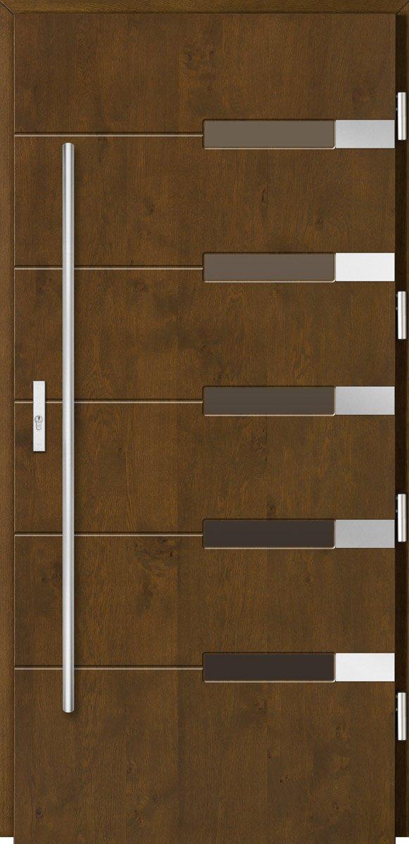 Linia Simple wyróżnia się tzw. konstrukcją "płycinową". Konstrukcja skrzydła drzwi wykonana jest z drewna sosnowego klejonego warstwowo i naprzemiennie. Dodatkowe wzmocnienie stanowią specjalne metalowe ceowniki. Za niską przenikalność cieplną odpowiada dedykowany panel termoizolacyjny znajdujący się pomiędzy ramiakami skrzydła drzwi. Od zewnątrz drzwi wykończone są wodoodporną sklejkę dębową, która zapewnia odporność na czynniki zewnętrzne jednocześnie zapewniając piękny wygląd jakim charakteryzuje się naturalne drewno.