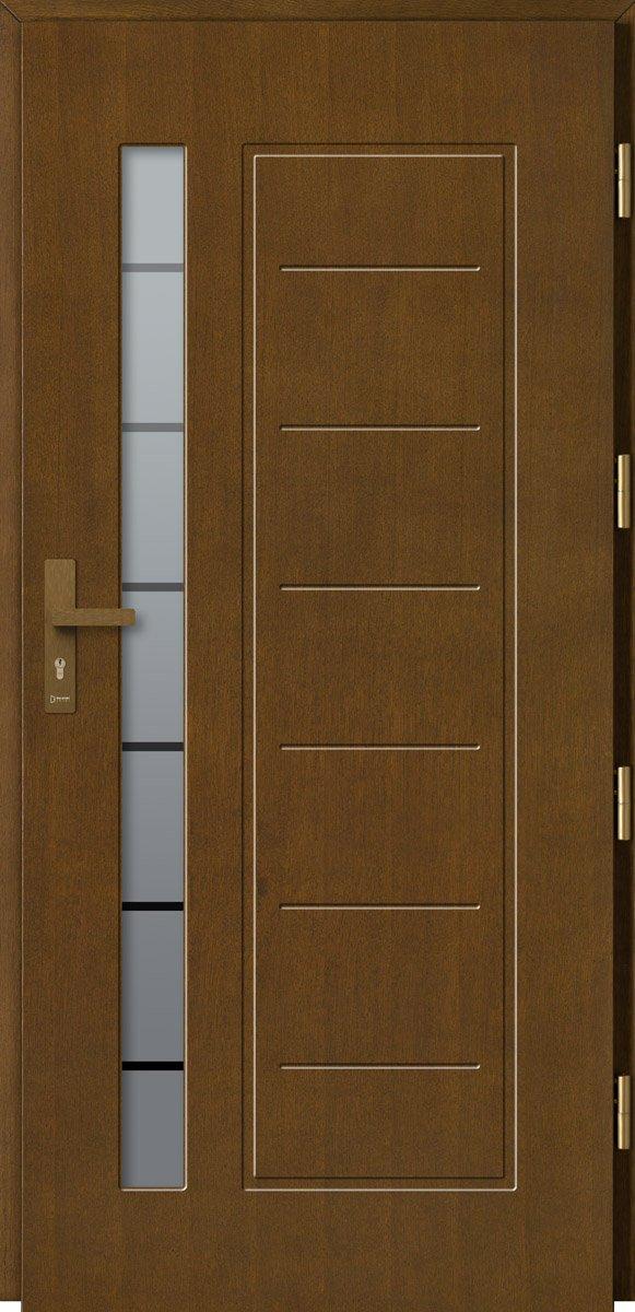 Linia Simple wyróżnia się tzw. konstrukcją "płycinową". Konstrukcja skrzydła drzwi wykonana jest z drewna sosnowego klejonego warstwowo i naprzemiennie. Dodatkowe wzmocnienie stanowią specjalne metalowe ceowniki. Za niską przenikalność cieplną odpowiada dedykowany panel termoizolacyjny znajdujący się pomiędzy ramiakami skrzydła drzwi. Od zewnątrz drzwi wykończone są wodoodporną sklejkę dębową, która zapewnia odporność na czynniki zewnętrzne jednocześnie zapewniając piękny wygląd jakim charakteryzuje się naturalne drewno.