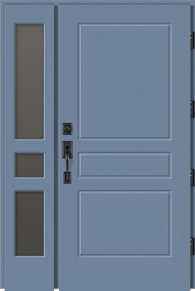 Linia Simple wyróżnia się tzw. konstrukcją "płycinową". Konstrukcja skrzydła drzwi wykonana jest z drewna sosnowego klejonego warstwowo i naprzemiennie. Dodatkowe wzmocnienie stanowią specjalne metalowe ceowniki. Za niską przenikalność cieplną odpowiada dedykowany panel termoizolacyjny znajdujący się pomiędzy ramiakami skrzydła drzwi. Od zewnątrz drzwi wykończone są wodoodporną sklejkę dębową, która zapewnia odporność na czynniki zewnętrzne jednocześnie zapewniając piękny wygląd jakim charakteryzuje się naturalne drewno.